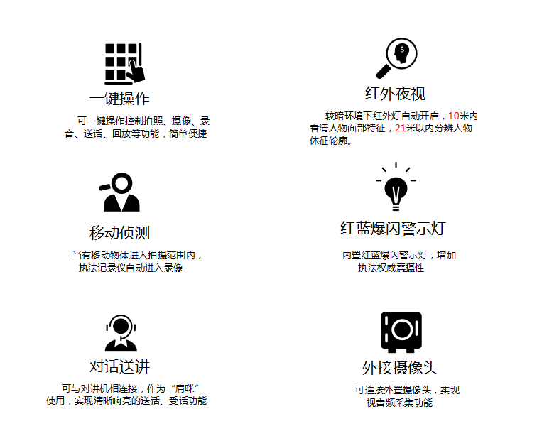 USDT数字助手 DSJ-200F 执法仪(法院/政府/城管)拍摄像素高达5000万,广角镜头137,拍摄画面精细而全面,大容量电池支持陆续在工作12小时不断电